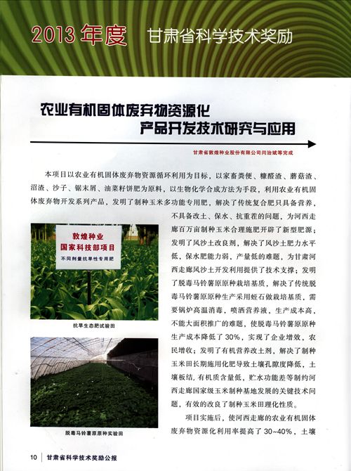 “農業有機固體廢棄物資源化產品開發技術研究與應用”喜獲甘肅省技術發明一等獎
